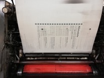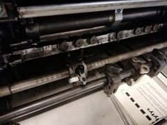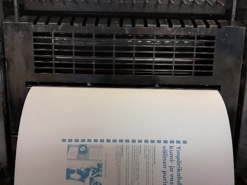 Sitten säädettiin kynnet eli arkinerottajat sopivasti niin, että painettaessa arkit kulkevat yksitellen.