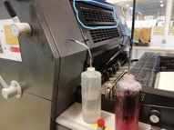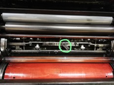 Sitten asetetaan väritelojen pesulaite painoyksikköön luovutuspuolelle. Sitten kone käynnistetään nopeudelle 4000 kierrosta.