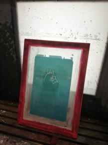 Sitten pyyhitään ylimääräinen painoväri pois painokankaalta ja laitetaan vipperiin Primula wash:ia ja pyyhitään. Ja pestään painokankaalta emulsio painepesurilla ja etanolipohjaisella pesunesteellä.